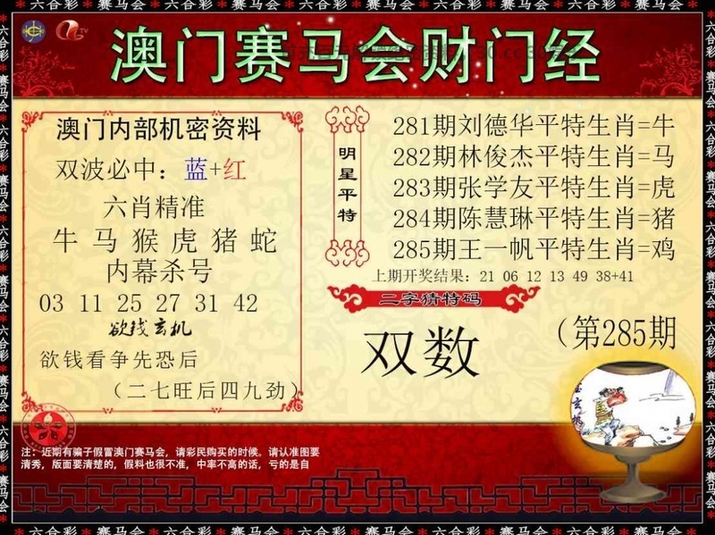 287期:单双两肖╠双肖+羊兔╣开:發00准
